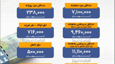 اینفوگرافیک:جزئیات حداقل دریافتی کارگران در سال ۱۴۰۳ + اینفوگرافیکبرخلاف انتظار جامعه کارگری که خواستار حداقل دستمزد ۱۵ میلیون تومانی بودند، سید صولت مرتضوی و دولت ابراهیم رئیسی…